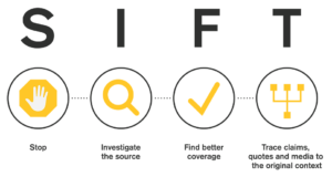 - The SIFT method is another method to check the reliability i.e. Stop, Investigate the source, Find better coverage, and Trace Claims, quotes, and media to the original context. This method is developed by digital literacy expert Mike Caulfield and it helps you to analyze information, especially news or other online media.