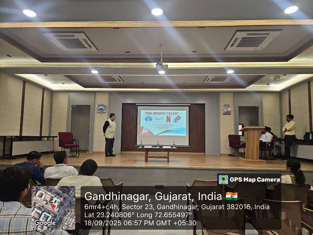 The first speaker of the evening, Mr. Himanshu Sharma talked about the basic concepts of marketing and how it operates within a business setup as well as in the market. His interactive style made the discussion of the concepts highly interesting. The next speaker, Mr. Hardik Shastri focused on the real life stories that elaborated the concepts discussed by Mr. Sharma. The success stories of various brands were projected as case studies to be related to the theories taught in the classrooms. The powerful story telling captured the audience’s interest. Both the sessions were very well interconnected and together they provided a wonderful narration of effective branding.