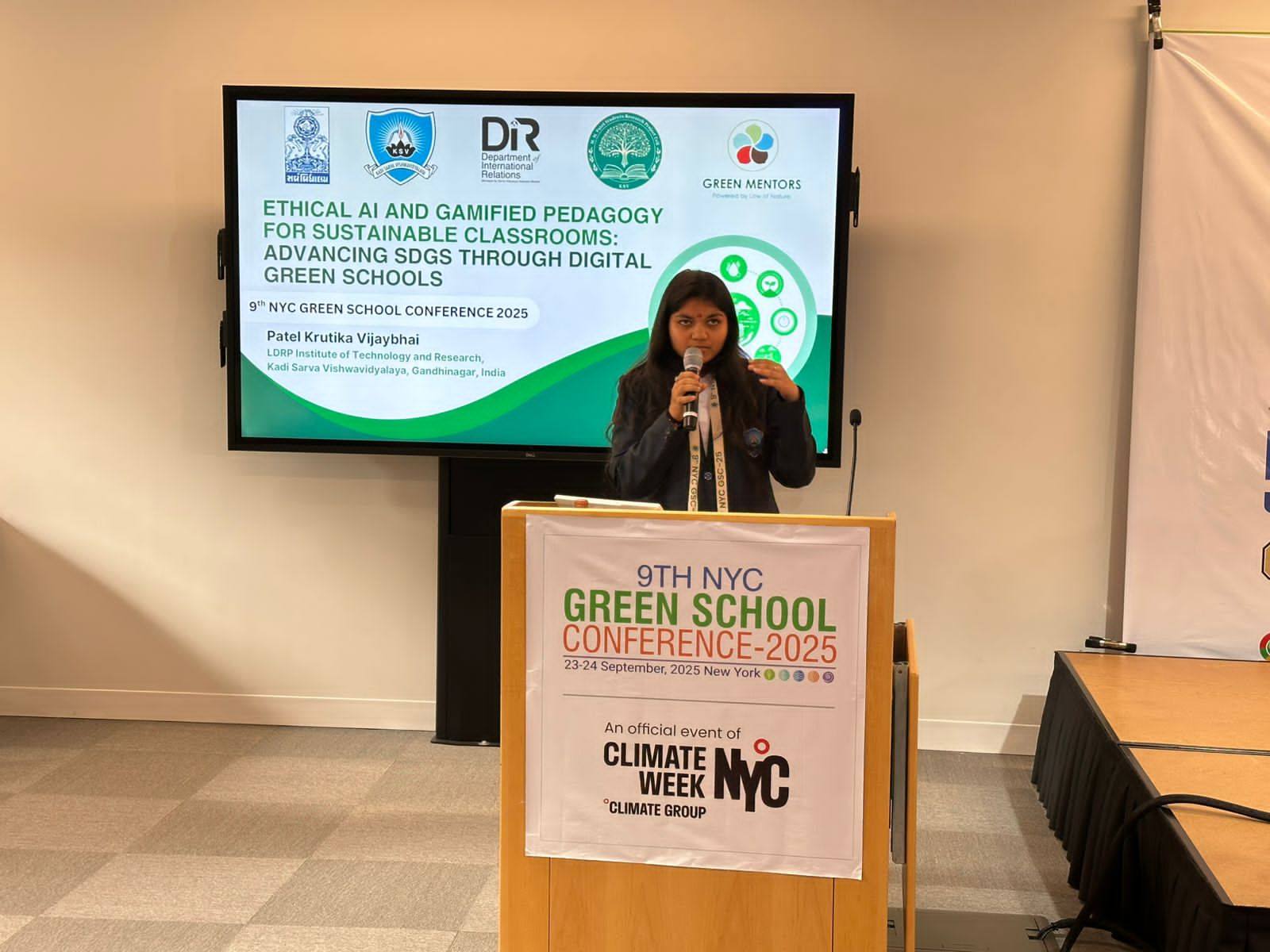 Kadi Sarva Vishwavidyalaya is delighted to announce its remarkable presence at the 9th NYC Green School Conference 2025, organized by Green Mentors during Climate NYC Week at Cornell University, New York, USA (23–24 Sept 2025).