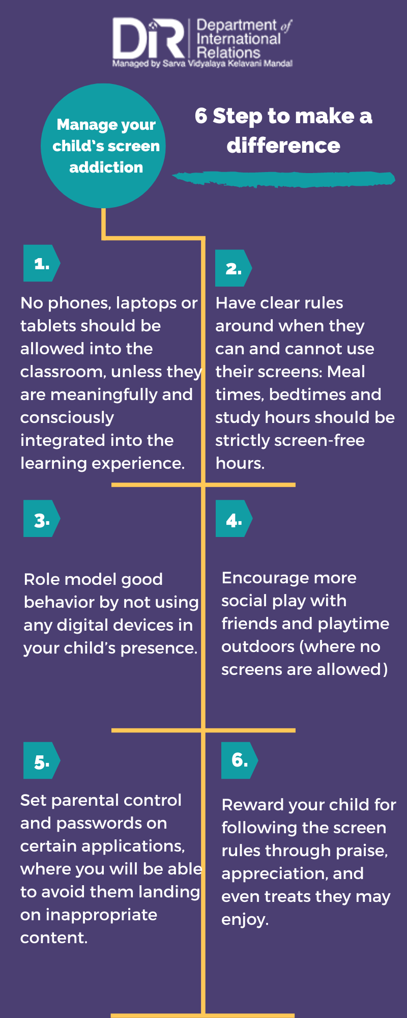 Screentime addiction is a very common problem with most families now, and managing this addiction is extremely important both in the classrooms and at home. Being free of screens will gradually increase your child’s focus and attention and will reduce their emotional distress.