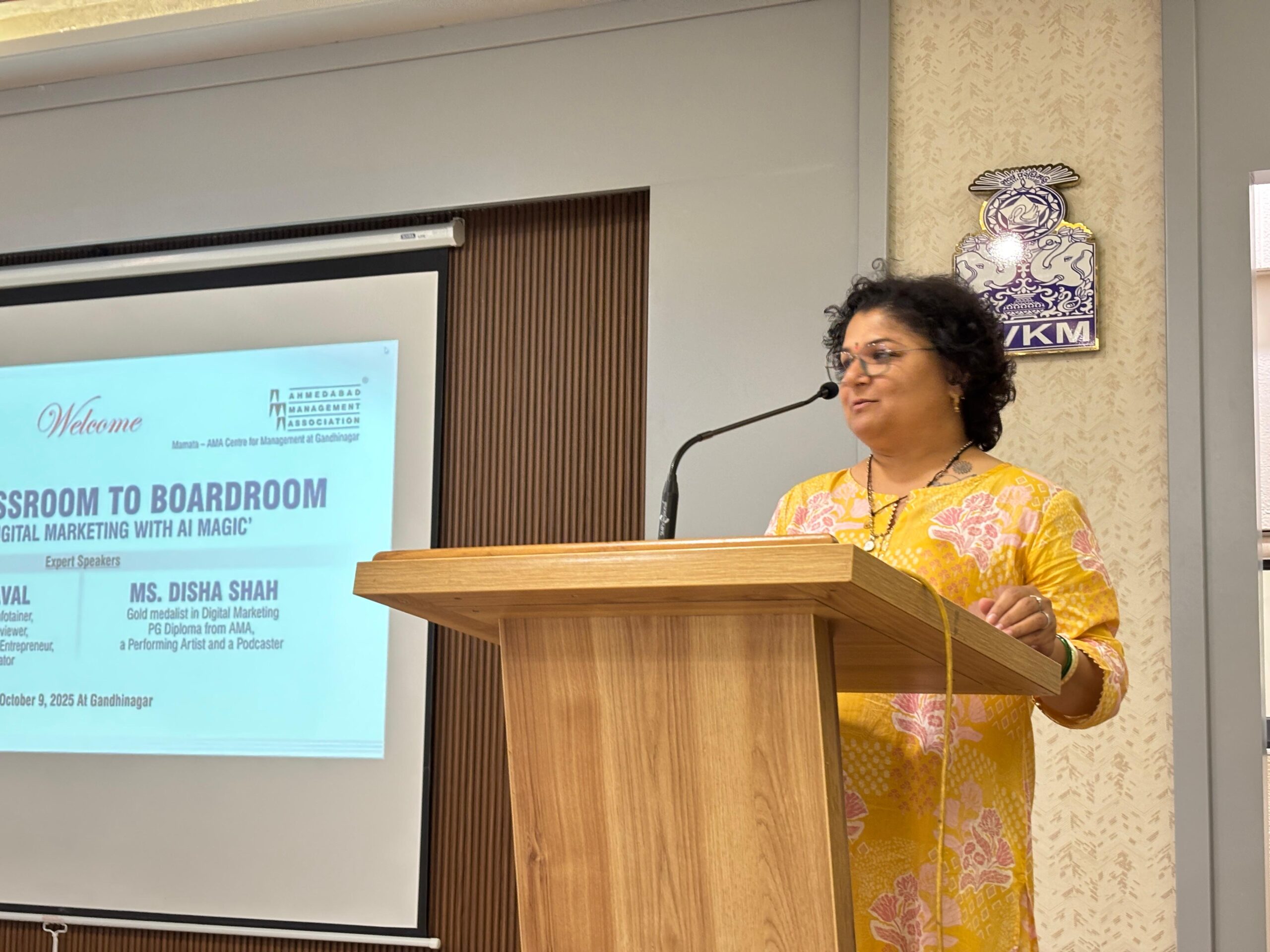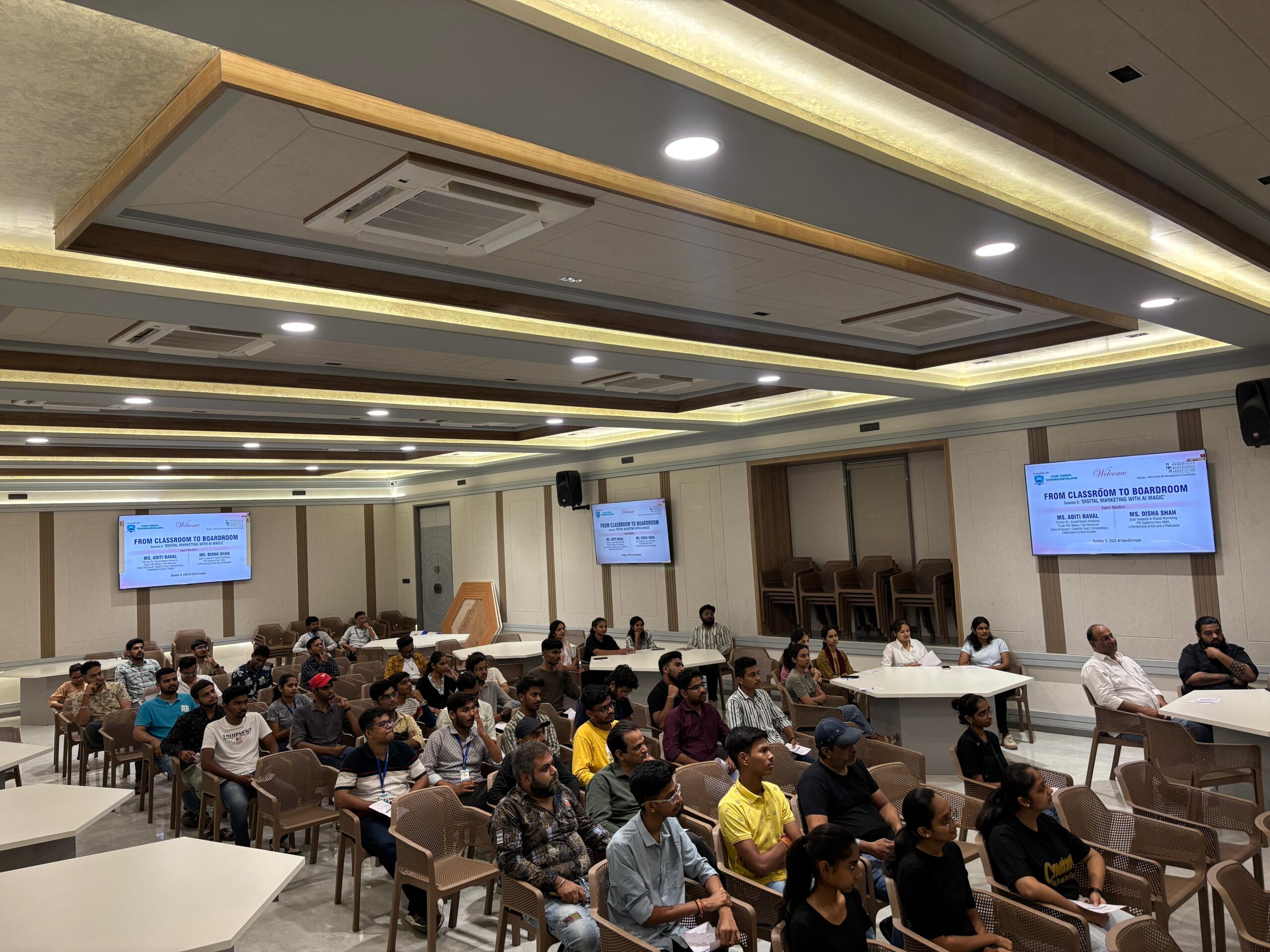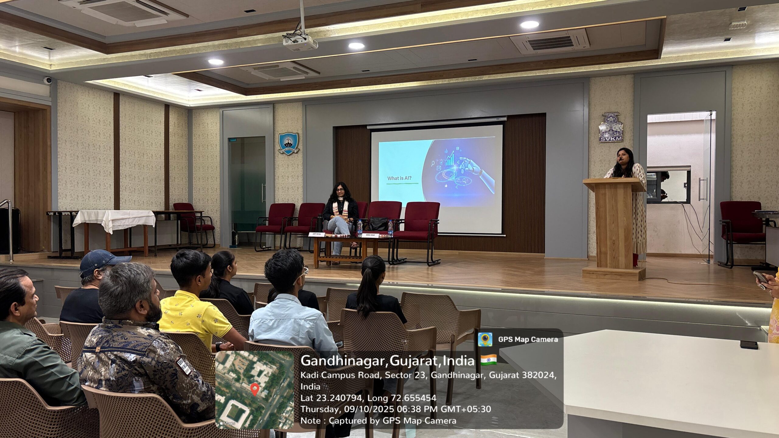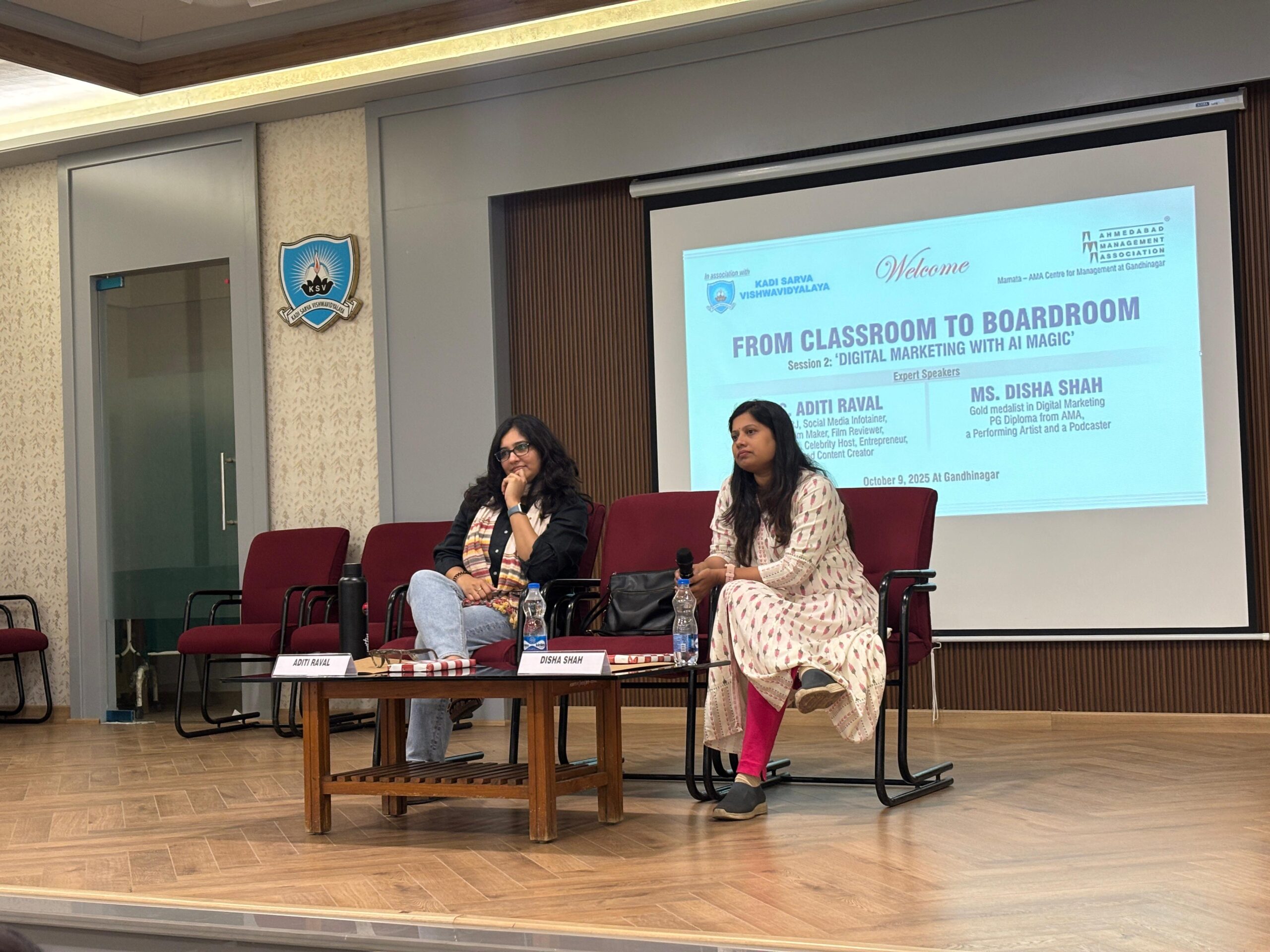 The third Open Forum event, organized by Kadi Sarva Vishwavidyalaya in collaboration with the Ahmedabad Management Association hosted one more session in the series of “From Classroom to Boardroom” with a special focus on Digital Marketing with AI Magic on the 9th of October 2025, in the Brahmani Krupa Hall at the KSV campus of Sector 23, Gandhinagar.