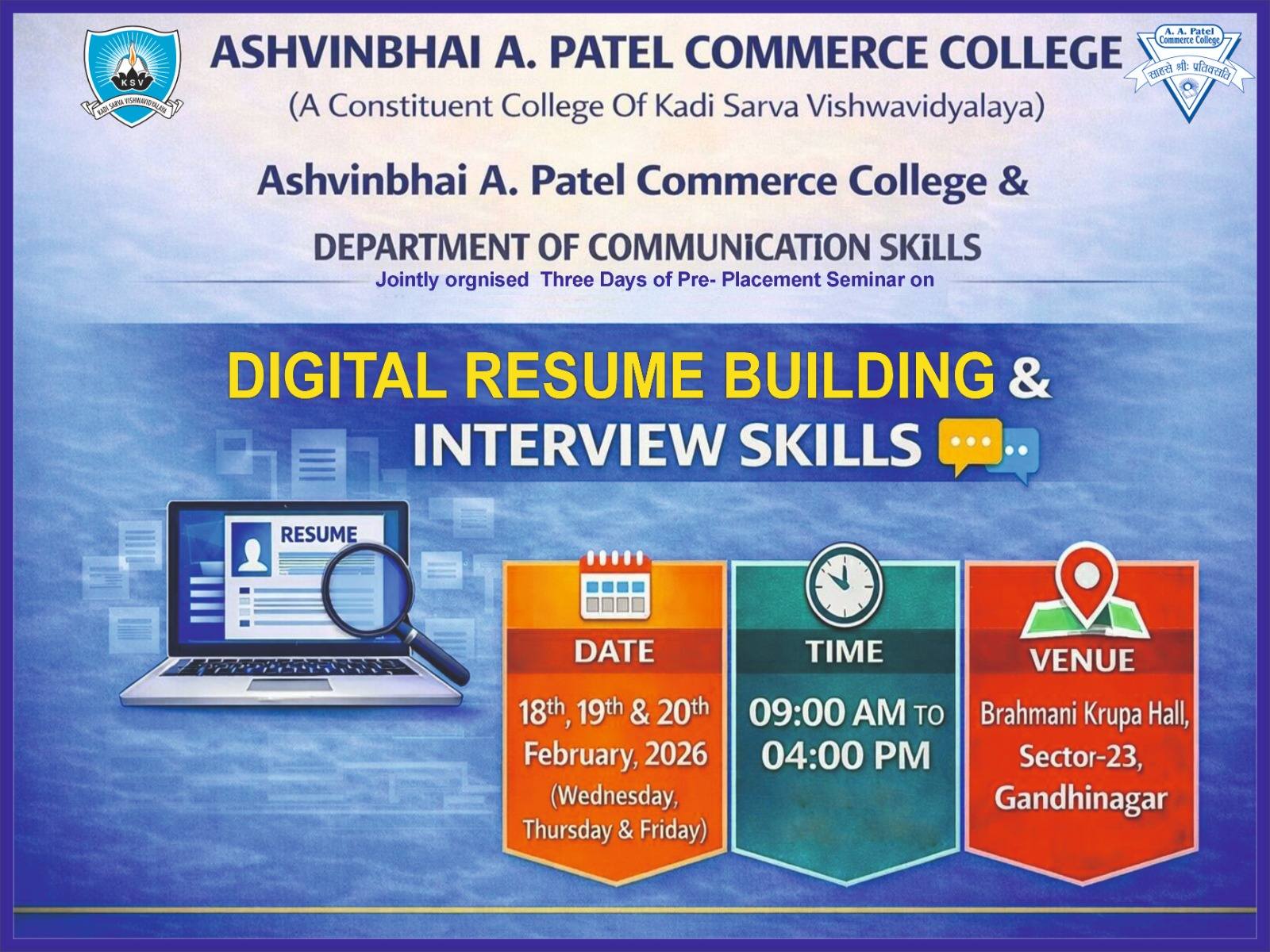 • Three-Day Pre-Placement Training on Digital Resume and Interview Skills Conducted at Ashvinbhai A. Patel Commerce College