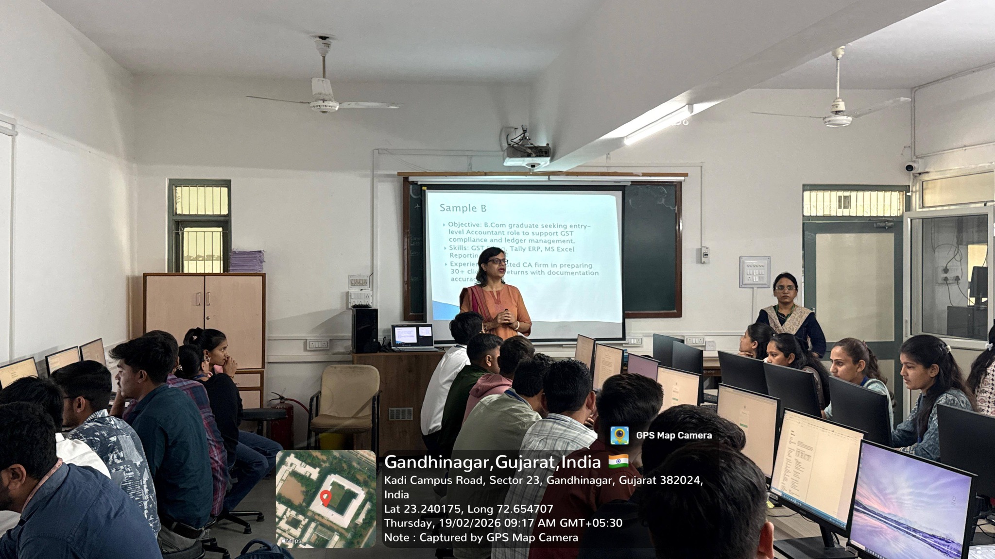 The Department of Communication Skills and the iSEP Cell, KSV conducted a three-day pre-placement training program on Digital Resume and Interview skills for the final-semester B.Com students at Ashvinbhai A Patel Commerce College, Sector 23, Gandhinagar, from February 18th to 20th, 2026.
